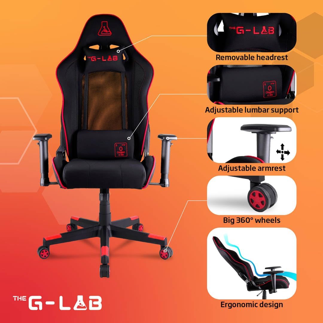 The G-Lab – K Seat Oxygen XL – Chaise Gaming Mesh – Chaise Gamer Ergonomique Confortable – Chaise De Gamer avec Appui-tête – Dossier Inclinable A 150°- Chaise De Bureau Accoudoirs 3D – Nouveau 2022
